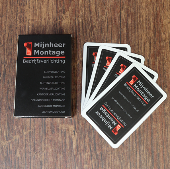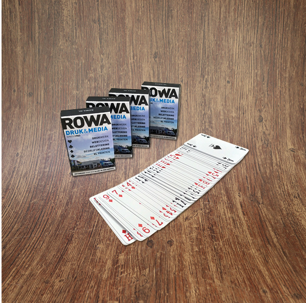 Personaliseer uw speelkaarten met bedrukte rug en doosje. Ideaal voor promoties, relatiegeschenken of unieke spelavonden.