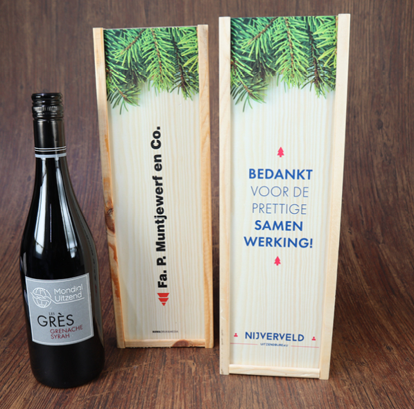 • Geschikt voor 1 wijnfles, met gepersonaliseerd deksel. Excl. btw