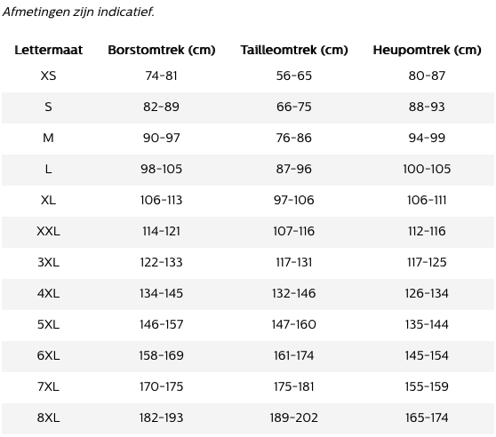 Tip: onderaan de pagina kunt u de maattabel downloaden, mocht u niet helemaal zeker zijn over de maat!