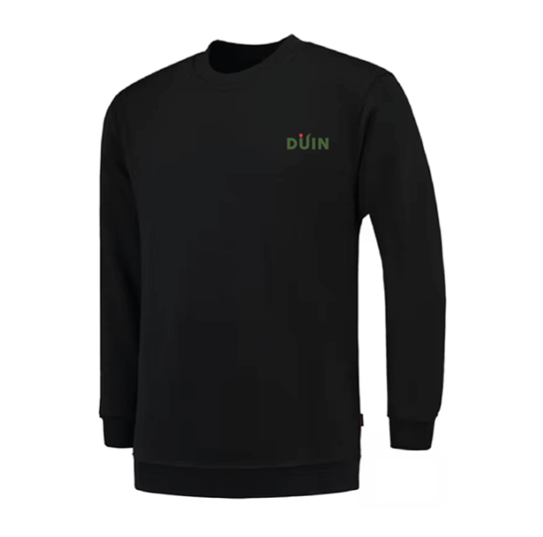 Zwarte sweater met ronde hals Bedrukking: borst links