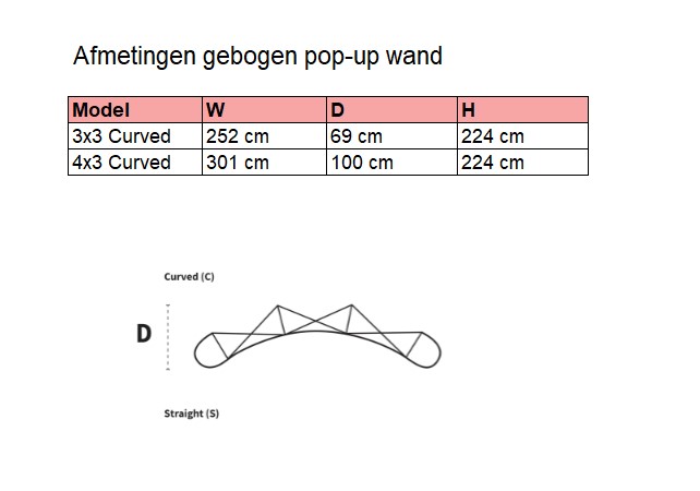 Naast deze gebogen pop-up wand hebben we ook de rechte pop-up wand en andere diverse beurswanden in de webshop.